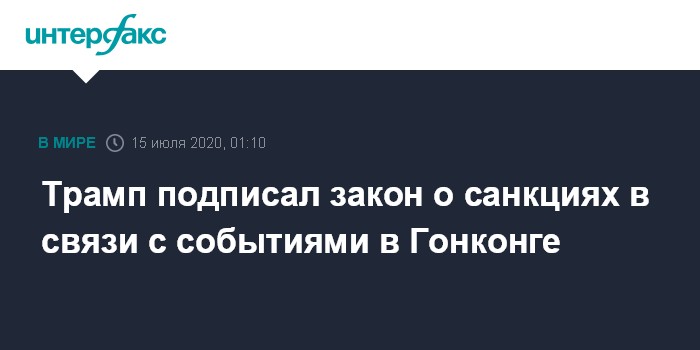 Ранее обе палаты конгресса одобрили закон, предусматривающий санкции против официальных лиц, имеющих отношение к недавно принятому Закону о национальной безопасности Гонконга. В США считают, что этот закон нарушает особый статус Гонконга и лишает его жителей ряда свобод.