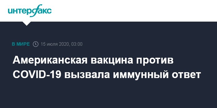 Москва. 15 июля. INTERFAX.RU - Экспериментальная вакцина против COVID-19, которую разрабатывает американская компания Moderna, смогла вызвать иммунный ответ у всех добровольцев на ранней стадии исследования. Соответствующие данные опубликованы в журнале New England Journal of Medicine.