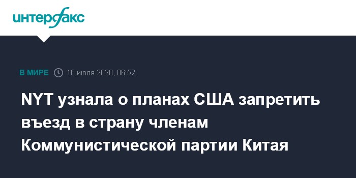 NYT узнала о планах США запретить въезд в страну членам Коммунистической партии Китая
