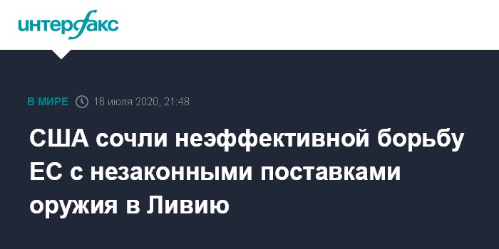 США сочли неэффективной борьбу ЕС с незаконными поставками оружия в Ливию