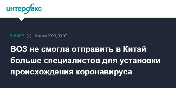 По словам главы программы ВОЗ по чрезвычайным ситуациям в области здравоохранения Майкла Райана, изначально организация рассчитывала отправить в Китай более многочисленную группу экспертов, но пока сомневается, что это получится в июле.
