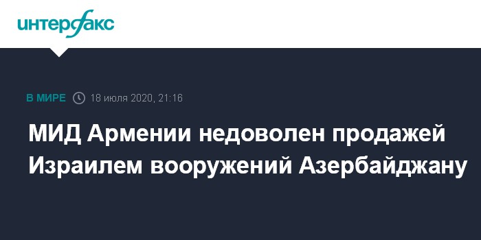 Москва. 18 июля. INTERFAX.RU - Армения поднимет вопрос о продаже Израилем вооружения Азербайджану на двустороннем и многостороннем уровнях, заявила пресс-секретарь МИД Армении Анна Нагдалян.