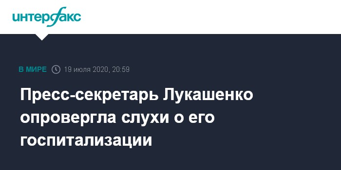 В воскресенье вечером в соцсетях появилась информация о госпитализации 65-летнего Лукашенко из-за гипертонического криза. В сообщениях отмечается, что ухудшение самочувствия белорусского лидера произошло через час после встречи в Минске с премьером РФ Михаилом Мишустиным 17 июля.