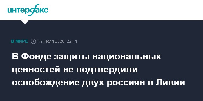 В Фонде защиты национальных ценностей не подтвердили освобождение двух россиян в Ливии