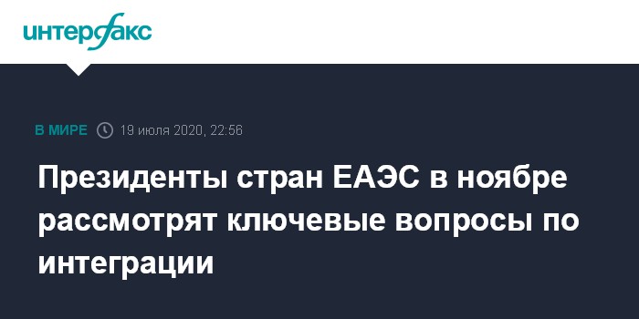 Президенты стран ЕАЭС в ноябре рассмотрят ключевые вопросы по интеграции