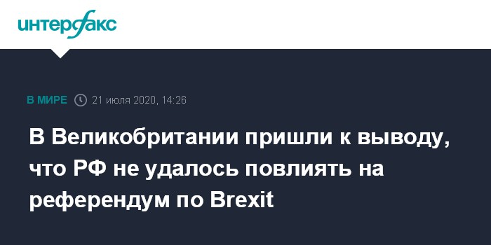 Москва. 21 июля. INTERFAX.RU - У британского правительства нет данных, указывающих на то, что РФ удалось повлиять на результаты референдума по Brexit, заявили во вторник в правительстве.