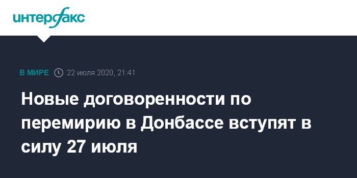 Новые договоренности по перемирию в Донбассе вступят в силу 27 июля