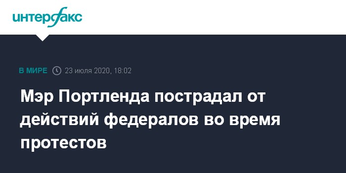 Москва. 23 июля. INTERFAX.RU - Мэр города Портленд (штат США Орегон) Тед Уилер пострадал от действий сотрудников федеральных правоохранительных служб, которые применили слезоточивый газ в ходе подавления протестов близ здания федерального суда в городе, сообщило в четверг агентство Associated Press (AP).