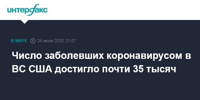 Число заболевших коронавирусом в ВС США достигло почти 35 тысяч