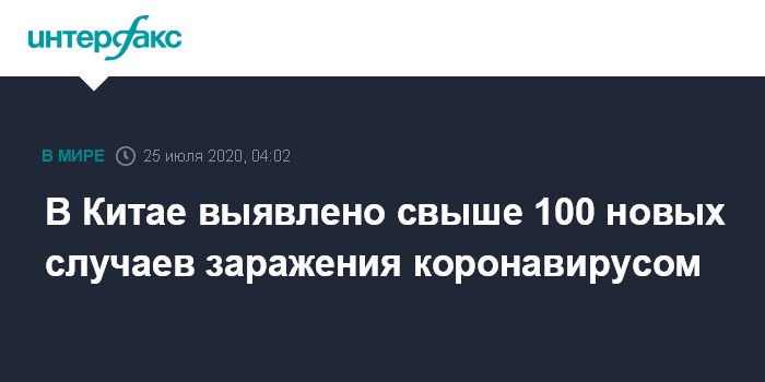 Москва. 25 июля. INTERFAX.RU - За истекшие сутки в Китае выявлены 108 новых инфицированных COVID-19: 34 больных в активной форме и 74 бессимптомных носителя, сообщил Госкомздрав КНР на своем официальном сайте.