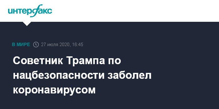 Советник Трампа по нацбезопасности заболел коронавирусом