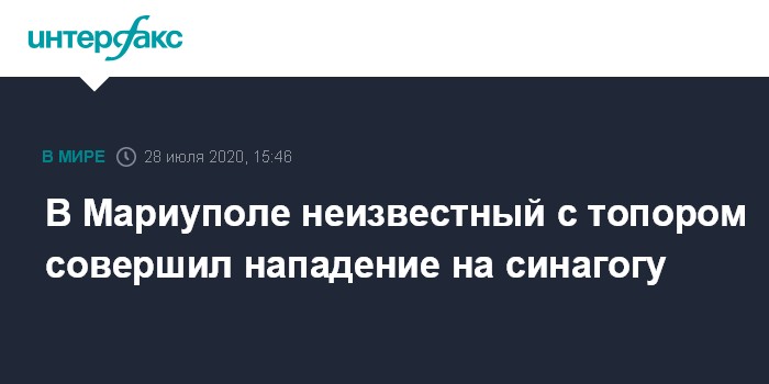 "28 июля 2020 года ... после утренней молитвы неизвестный ворвался в здание синагоги с топором. Он напал на охранника, который вышел навстречу, и нанес ему несколько ударов топором", - сообщил лидер еврейской общины Мариуполя раввин Менахем Мендл Коэн.