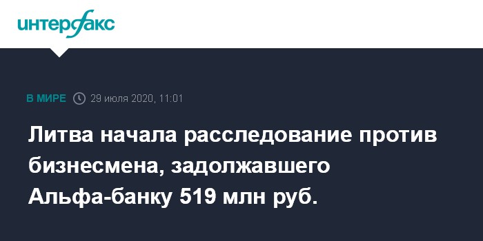 Литва начала расследование против бизнесмена, задолжавшего Альфа-банку 519 млн руб.