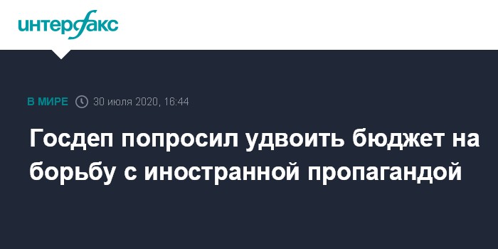 Москва. 30 июля. INTERFAX.RU - Госдеп США попросил увеличить вдвое финансирование Центра глобального взаимодействия (подразделение Госдепартамента США) на 2021 год для противодействия пропаганде со стороны России, заявил в четверг глава госдепа США Майк Помпео.
