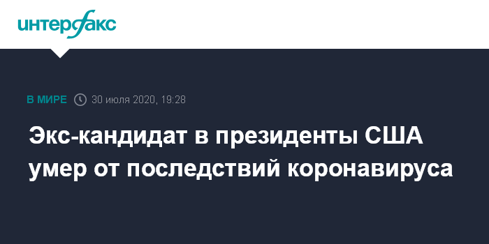 Экс-кандидат в президенты США умер от последствий коронавируса