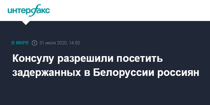 Москва. 31 июля. INTERFAX.RU - Руководство Следственного комитета Белоруссии разрешило российскому консулу посетить 33 россиян, задержанных в ночь на 29 июля под Минском и на юге страны. Об этом сообщили в пресс-службе российского посольства в Минске.