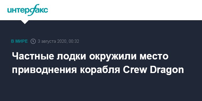 Москва. 3 августа. INTERFAX.RU - Спасательным катерам компании SpaceX, которые были задействованы в воскресенье в операции по эвакуации из воды американского космического корабля Crew Dragon в Мексиканском заливе, пришлось отгонять приблизившееся к нему большое количество частных лодок, следует из трансляции NASA с места события.