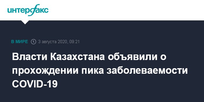 Власти Казахстана объявили о прохождении пика заболеваемости COVID-19