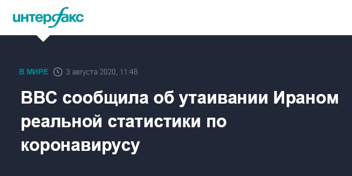Москва. 3 августа. INTERFAX.RU - Руководство Ирана утаило реальную статистику по заражениям и смертям инфицированных коронавирусом, настоящие цифры выше в два-три раза, сообщает в понедельник персидская служба BBC со ссылкой на данные, полученные от информированного источника.