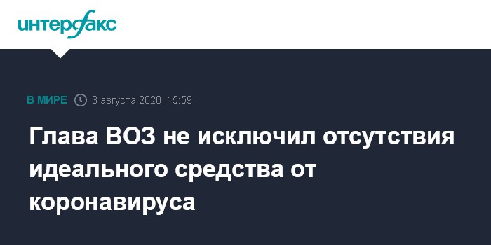 Москва. 3 августа. INTERFAX.RU - Директор Всемирной организации здравоохранения Тедрос Адханом Гебрейесус не исключил в понедельник, что "волшебное средства" от коронавируса может никогда не быть найдено.