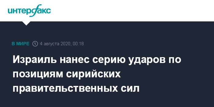 Москва. 4 августа. INTERFAX.RU - Армия обороны Израиля нанесла в понедельник вечером серию ударов по позициям сирийских правительственных сил на юге Сирии, сообщает The Jerusalem Post.