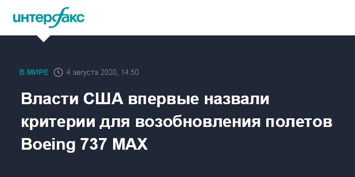 Власти США впервые назвали критерии для возобновления полетов Boeing 737 MAX