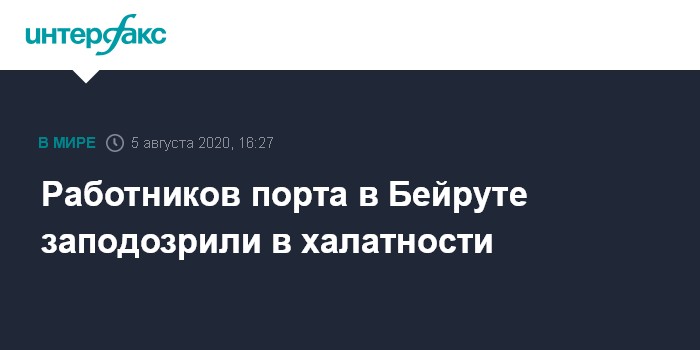 Москва. 5 августа. INTERFAX.RU - Мощный взрыв в порту Бейрута произошел из-за халатности портовых работников, сообщает Sky News со ссылкой на источники, знакомые с предварительными итогами расследования.