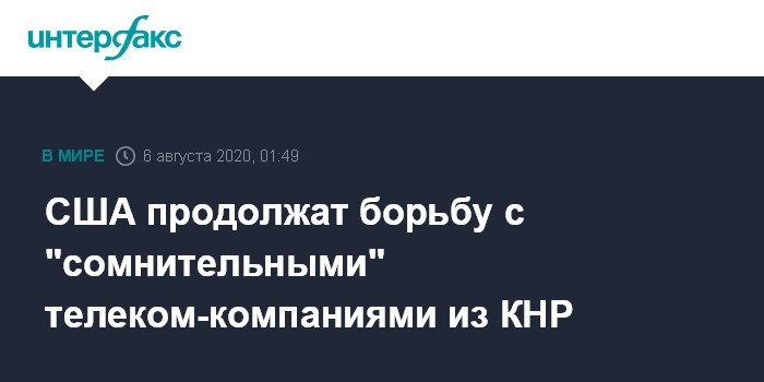 Он уточнил, что Госдеп вместе с Минюстом США, Пентагоном и Министерством внутренней безопасности будет добиваться от Федеральной комиссии по связи отзыва и аннулирования разрешения на предоставление телекоммуникационных услуг из и в США для компании China Telecom и еще трех китайских компаний.