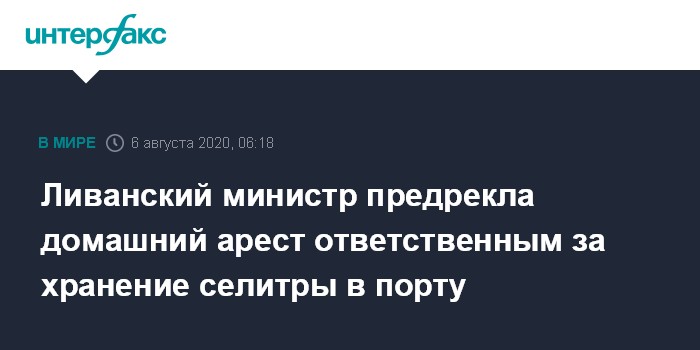 Ливанский министр предрекла домашний арест ответственным за хранение селитры в порту