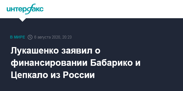 Москва. 6 августа. INTERFAX.RU - Президент Белоруссии Александр Лукашенко считает, что избирательные кампании экс-банкира Виктора Бабарико и бывшего главы Парка высоких технологий Валерия Цепкало финансировались из России.