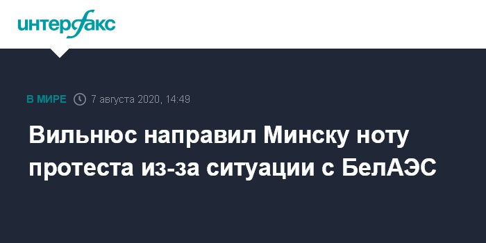 Соответствующая нота протеста литовского МИД передана в пятницу Минску, говорится в сообщении внешнеполитического ведомства. В Вильнюсе считают, что действия Белоруссии нарушили принципы открытости, прозрачности и добрососедства, а деятельность АЭС из-за близости к столице Литвы, нерешенных проблем ядерной безопасности и несоблюдения безопасности во время строительства представляет прямую угрозу для национальной безопасности прибалтийской страны, ее окружающей среды и населения.