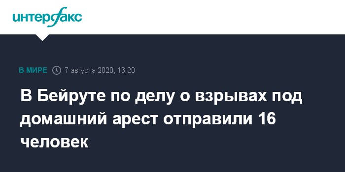 Москва. 7 августа. INTERFAX.RU - В рамках расследования серии взрывов в Бейруте следователи поместили под домашний арест 16 человек, сообщает в пятницу агентство EFE со ссылкой на собственные источники.