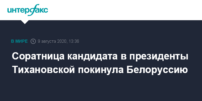 Соратница кандидата в президенты Тихановской покинула Белоруссию