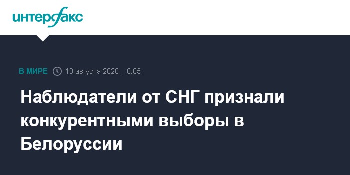 Москва. 10 августа. INTERFAX.RU - Президентские выборы в Белоруссии прошли открыто и конкурентно и обеспечили волеизъявление избирателей, миссия наблюдателей от СНГ не обнаружила фактов, которые бы поставили под сомнение легитимность выборов, заявил глава миссии Сергей Лебедев.