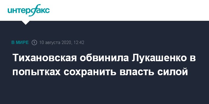 Тихановская обвинила Лукашенко в попытках сохранить власть силой