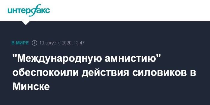 Москва. 10 августа. INTERFAX.RU - Правозащитники "Международной амнистии" в понедельник выразили обеспокоенность в связи с произвольным задержанием людей в Минске вдали от мест протестов, начавшихся после президентских выборов накануне.