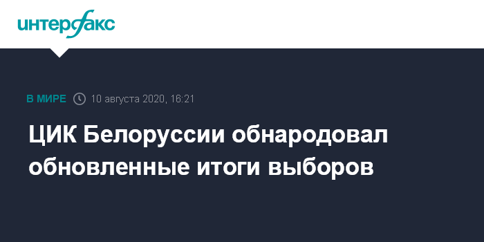 Москва. 10 августа. INTERFAX.RU - Центризбирком Белоруссии опубликовал обновленные данные по результатам голосования на выборах президента республики.