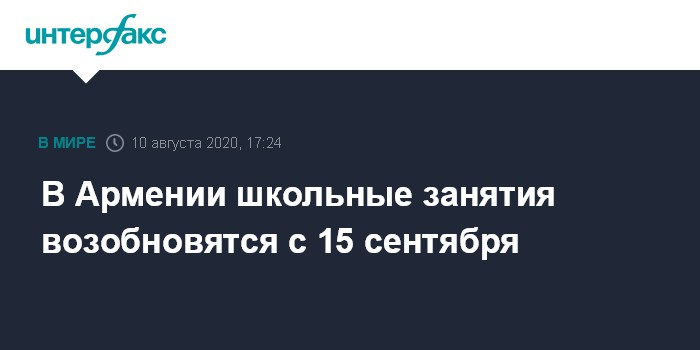 Москва. 10 августа. INTERFAX.RU - Власти Армении приняли решение возобновить занятия в школах республики с середины сентября.