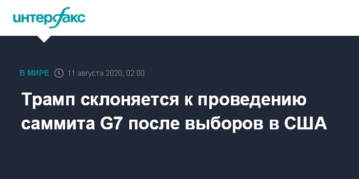 Москва. 11 августа. INTERFAX.RU - Президент США Дональд Трамп заявил, что склоняется к проведению саммита G7 после ноябрьских американских президентских выборов.