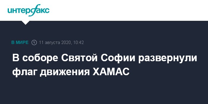 Москва. 11 августа. INTERFAX.RU - Ровно через неделю после того, как талибы развернули свой флаг в соборе Святой Софии в Стамбуле, аналогичную акцию в этом храме провели сторонники ХАМАСа.