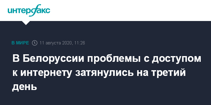 10 августа государственный оператор услуг связи "Белтелеком" сообщал, что до конца дня планирует восстановить полноценный доступ к глобальной сети в Белоруссии. В компании отметили, что наблюдается "проблема с внешними каналами, большая нагрузка". О конкретных сроках решения проблем в настоящее время не сообщается.