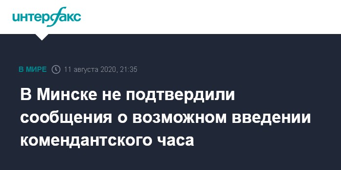 Москва. 11 августа. INTERFAX.RU - Пресс-секретарь премьер-министра Белоруссии Александра Исаева заявила, что официальной информации по вопросу о введении в Минске комендантского часа нет.