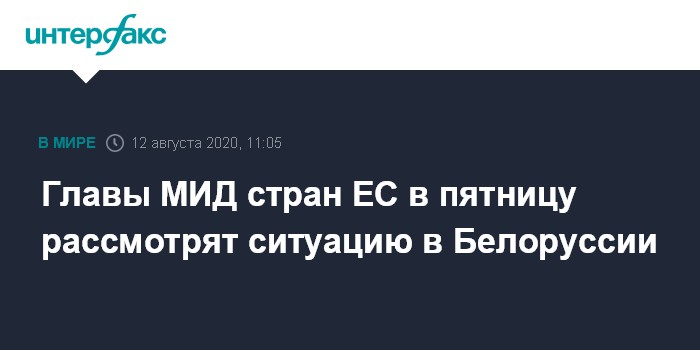 Москва. 12 августа. INTERFAX.RU - Главы МИД стран ЕС обсудят в пятницу события в Белоруссии, произошедшие после состоявшихся в воскресенье президентских выборов, сообщает в среду польское внешнеполитическое ведомство.