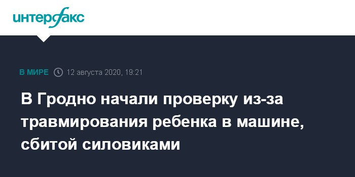 По информации местных СМИ, накануне во время акций протестов на одной из улиц Гродно бронированный автомобиль врезался в легковой, в котором, помимо родителей, находился ребенок. Девочка получила травмы и была доставлена в больницу.