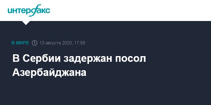 Москва. 13 августа. INTERFAX.RU - Посол Азербайджана в Сербии Эльдар Гасанов, также представлявший азербайджанские интересы в Черногории и в Боснии и Герцеговине, задержан по подозрению в присвоении бюджетных средств в крупном размере, сообщила Служба госбезопасности Азербайджана.