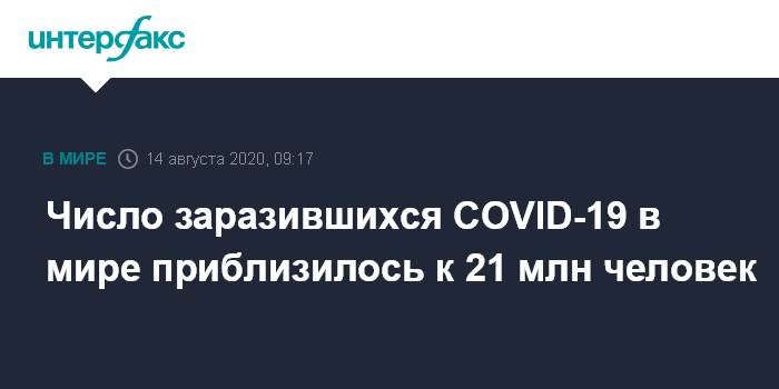 В то же время, по данным портала Worldometer, который специализируется на статистике по важнейшим мировым событиям, число инфицированных в мире превысило 21 млн.
