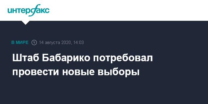 Москва. 14 августа. INTERFAX.RU - Штаб арестованного бывшего предправления "Белгазпромбанка" Виктора Бабарико потребовал провести до 15 сентября новые президентские выборы. Бабарико не был допущен к выборам, по итогам которых Центризбирком Белоруссии 9 августа объявил о победе Александра Лукашенко.