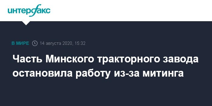 Москва. 14 августа. INTERFAX.RU - Производственная деятельность части цехов на Минском тракторном заводе (МТЗ) остановлена из-за акций протеста, которые проводят работники предприятия.