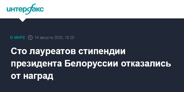 Москва. 14 августа. INTERFAX.RU - Сто стипендиатов, лауреатов, премиантов и дипломантов Специального фонда президента Белоруссии по поддержке талантливой молодежи и одаренных студентов и учащихся отказались от звания и всех привилегий.