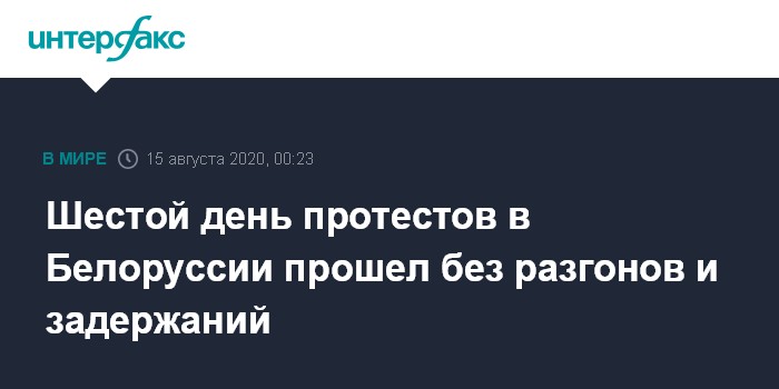 Москва. 15 августа. INTERFAX.RU - Акции протеста в Минске и других городах Белоруссии, продолжавшиеся всю пятницу, к полуночи завершаются, люди расходятся.
